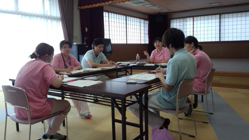 毎月、月初めに行っている”介護力向上委員会”の様子です。基礎から学べます!日中おむつゼロ継続の勉強の一つです。長崎分校に参加したメンバーが参加出来なかったメンバーにしっかり伝えます。
