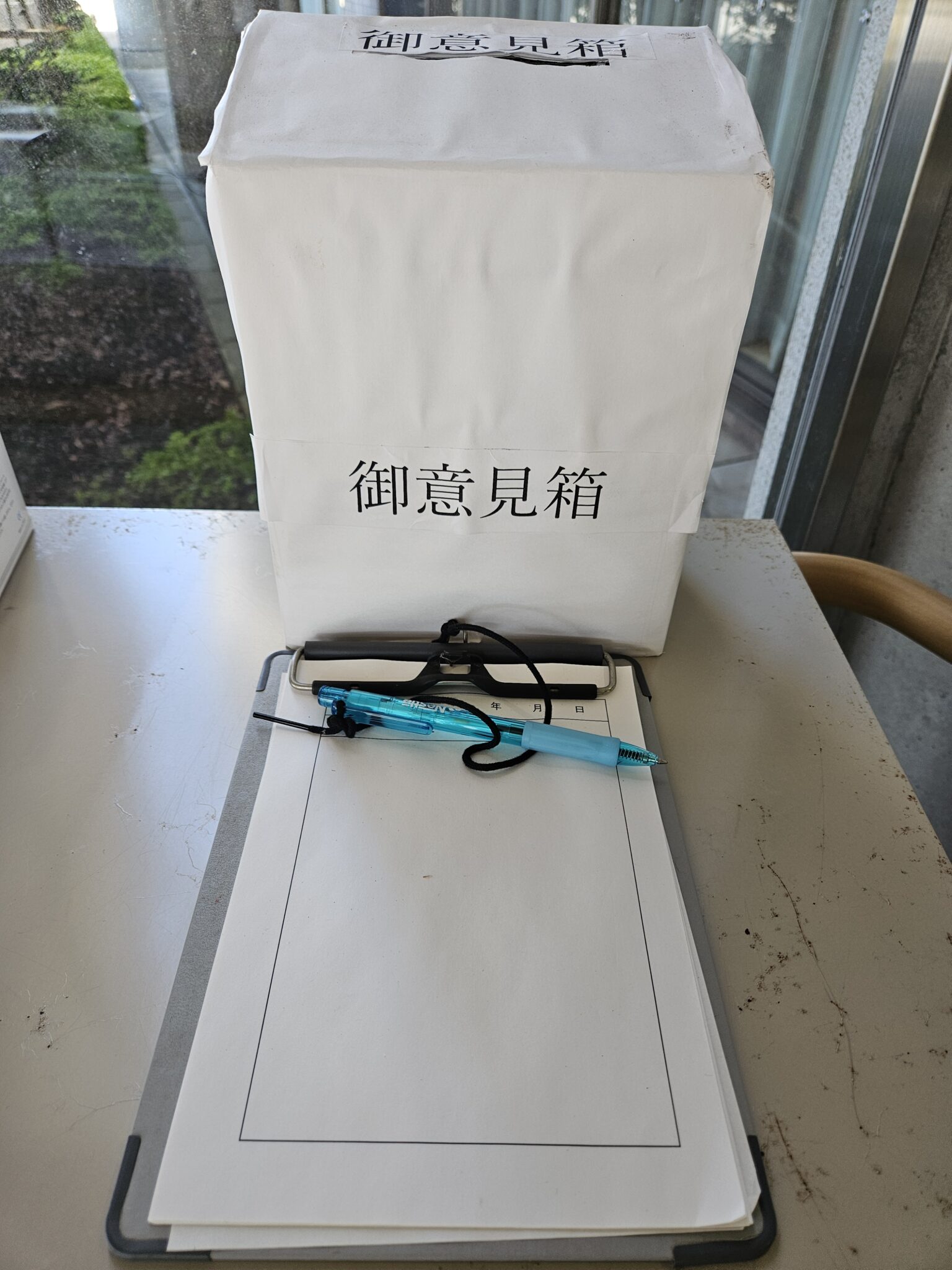 特別養護老人ホーム椿ヶ丘荘の玄関に置かれているご意見箱。