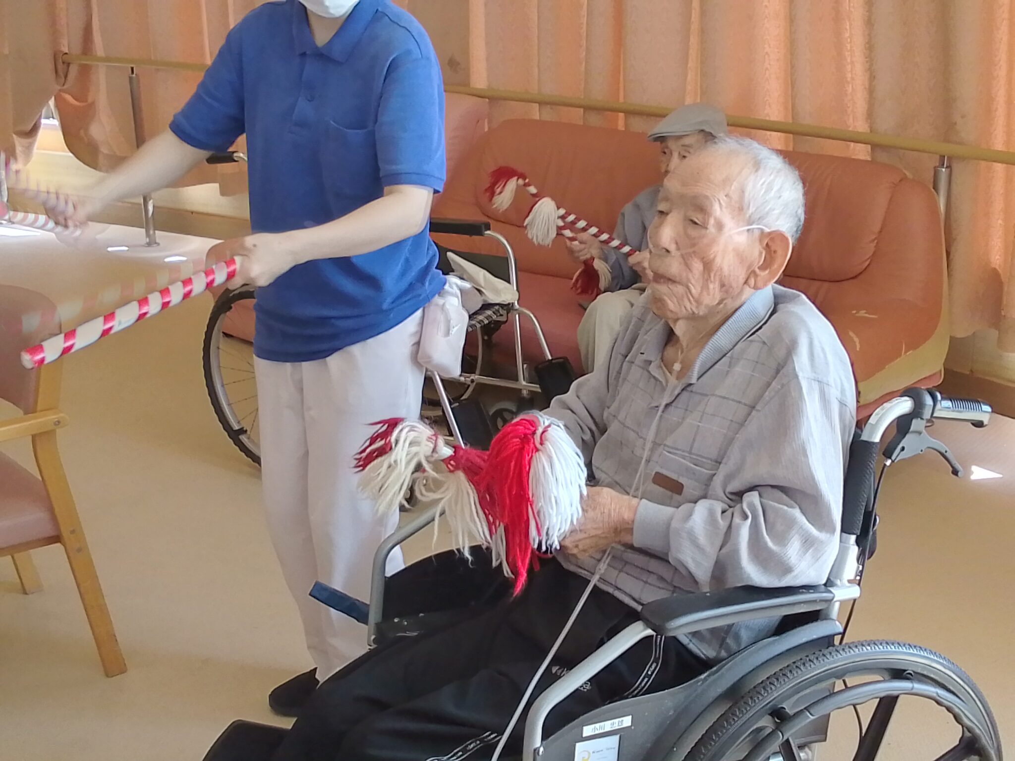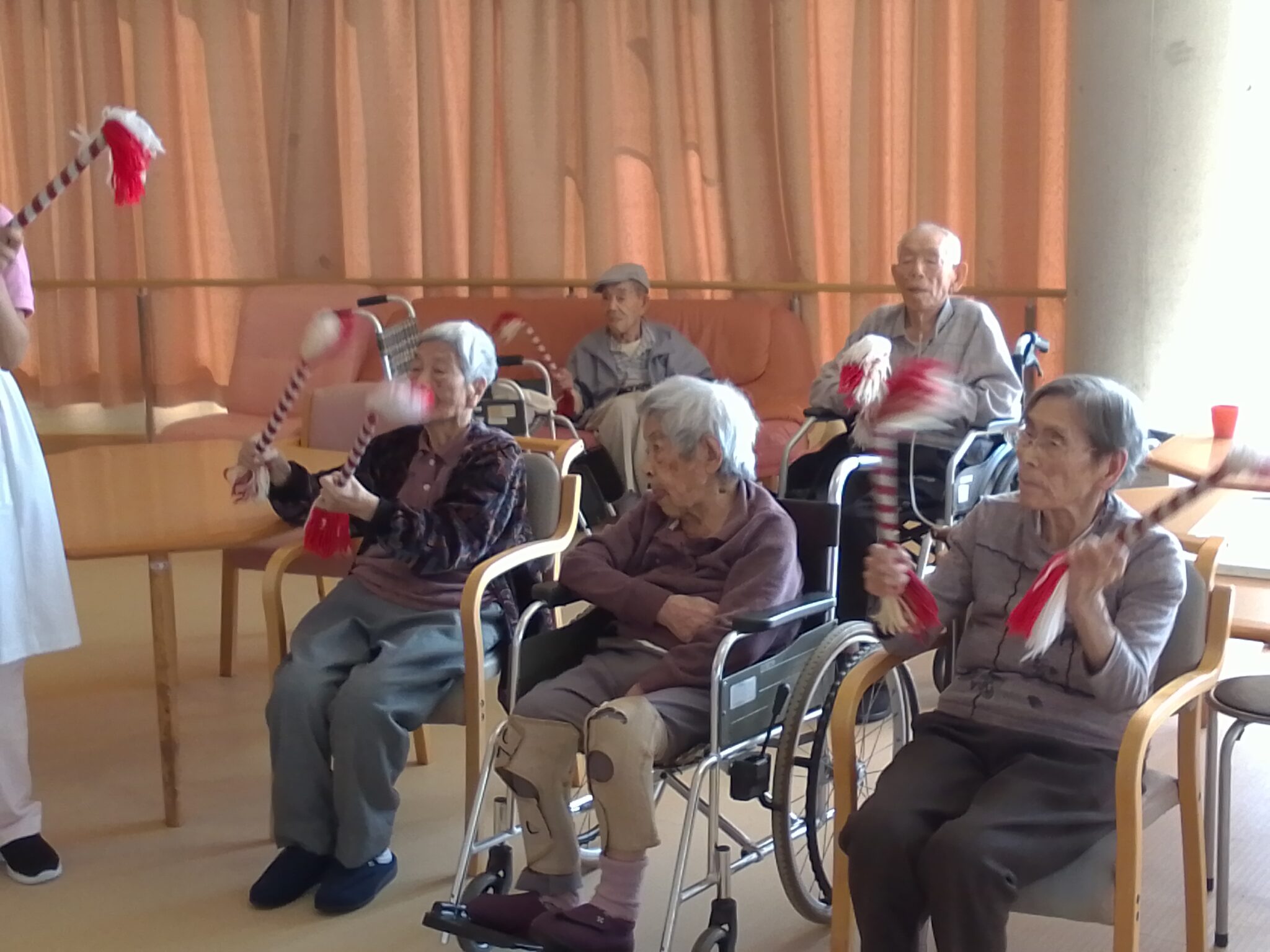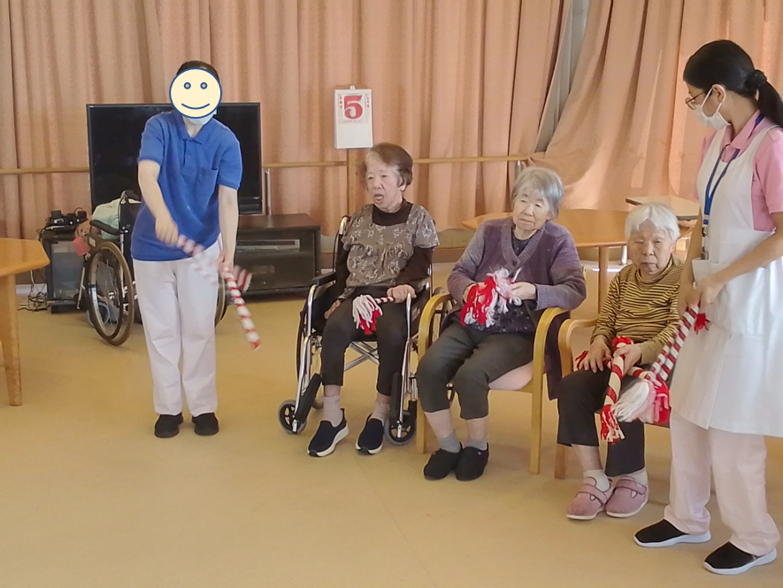 入居者の方々にも棒を持っていただき、一緒に参加していただきました♪