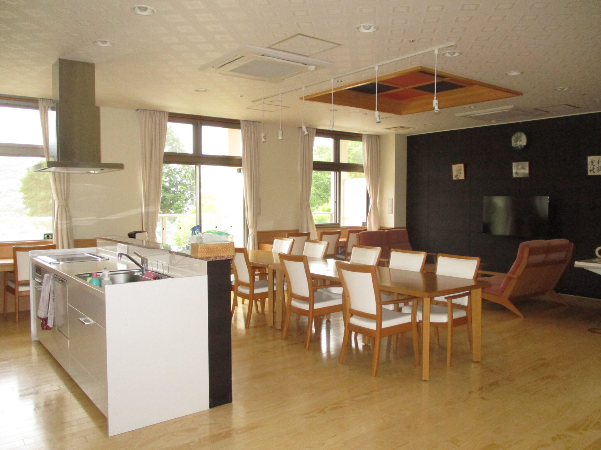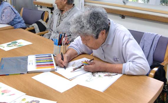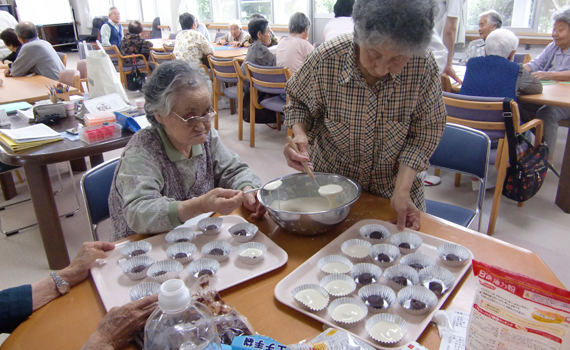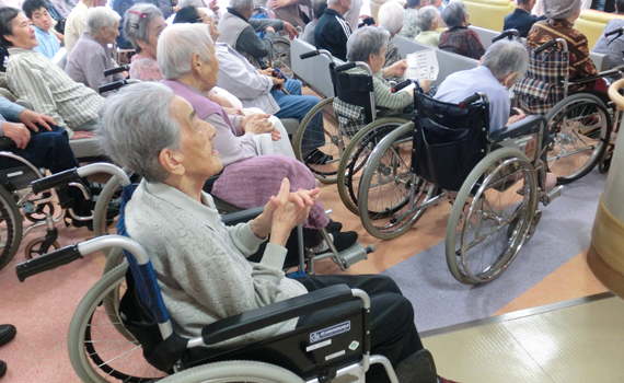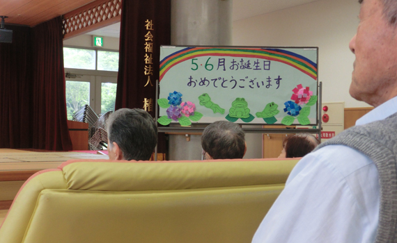 椿ヶ丘荘では、1階に広い地域交流ホールがあり、様々な行事が行われます。行事の他にも、体操や荘庭散歩等もお楽しみいただけます。